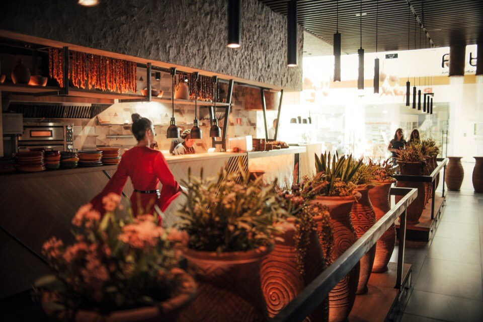 Большие интерьерные вазы и кашпо в ресторане ''МАМУКА'' Рыбинск.