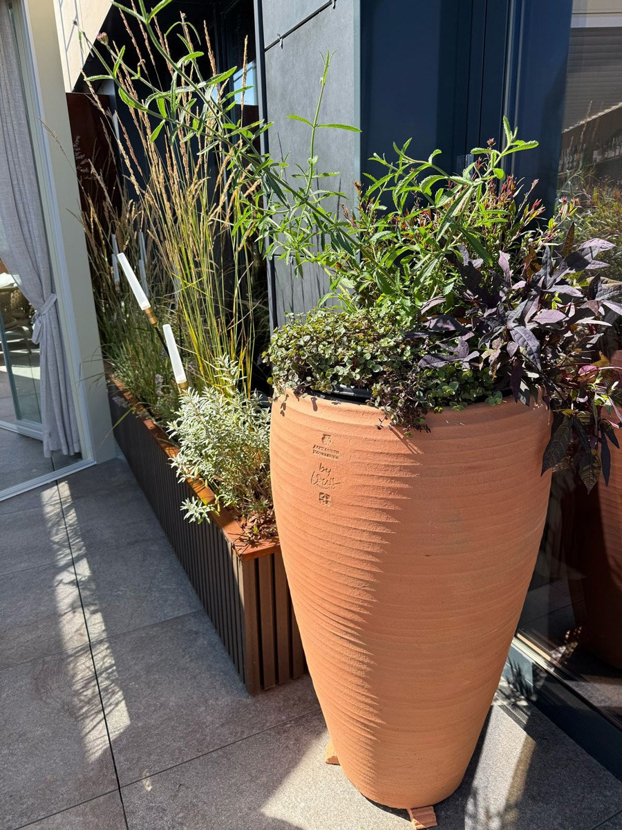Крупные уличные керамические кашпо для ресторана «Луи» в Казани.